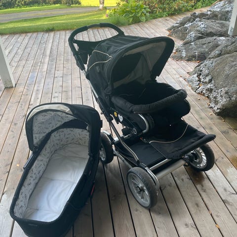 Selger en pent brukt britax go barnevogn brukt til to barn og oppbevart inne. Medfølger