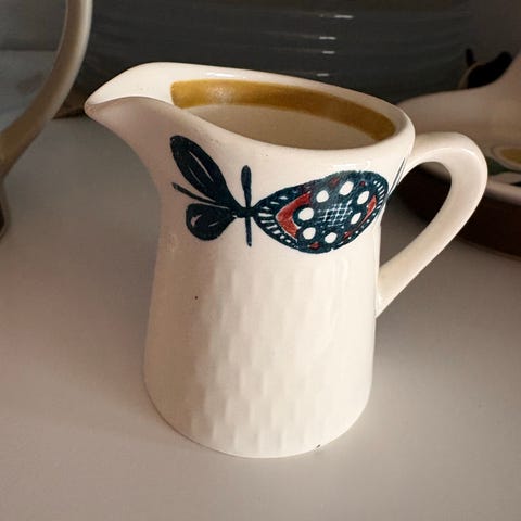 Nydelig liten blå mugge fra Stavangerflint selges kr. 300,-
