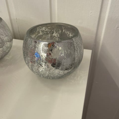 Lysholder, frostet glass med kongler/granbar-mønster.