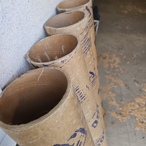 Selger to helt nye støperør fra Biltema, ideelle for grunnmur, søyler og støpearbeid.