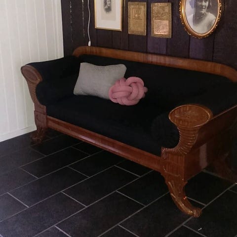 Selger en elegant og klassisk Biedermeier-sofa, trukket om av møbeltapetserer i eksklusiv sort fløyel (ser blå ut på bildet men den er sort), det kostet meg nesten 10.000. Sofaen har original stopping. Er kun brukt til pynt etter at den ble trukket om. Åpen for fornuftig bud. Må hentes.