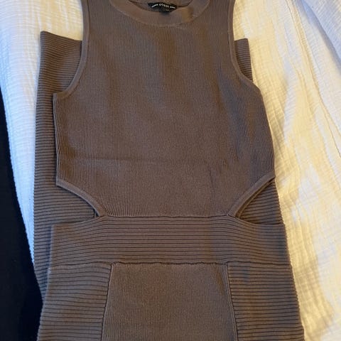 Høyhalset strikket, bolero med ‘trompet-ermer’. Merker str M, men er mer som en str S. Kan hentes på Løren (eller v/Stortinget på dagtid). Selges kr 49,-
