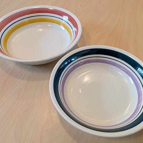 De har noen svake bestikkmerker uten at det skjemmer. En kaffekopp har en liten sprekk og kan følge med på kjøpet (se siste bilde).