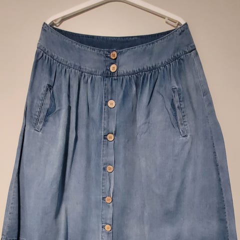 Jeansskjørt langt i lys blå dongeri str 40 fra My Essential Wardrobe. Nytt