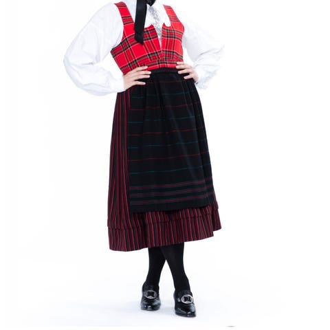 Rondastakk med ensfarget liv fra Husfliden. Det følger med to forklær som kan brukes sammen eller hver for seg.