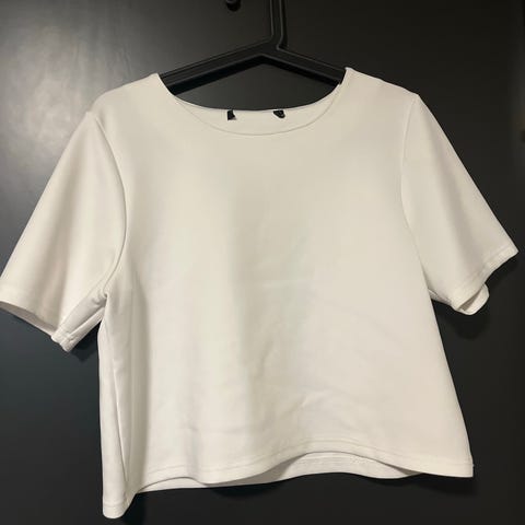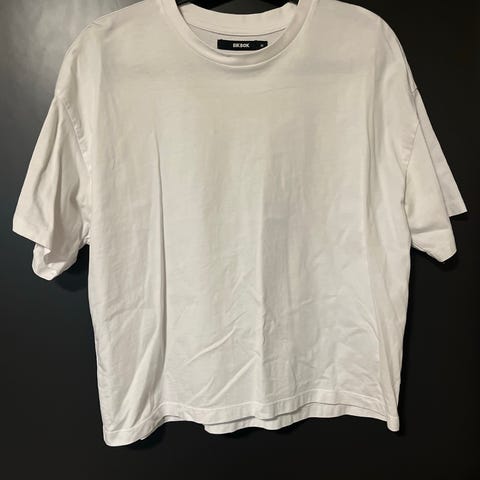 Selger denne pent brukte t-skjorten fra Bik Bok, da jeg har for mange t-skjorter liggende. Jeg bruker selv M i overdeler, men syns Bik Bok har litt små størrelser, og kjøpte derfor denne i L. Passer perfekt.