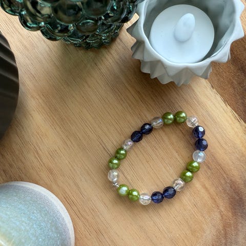 Søtt smykke og armbånd i fine farger. Selges samlet for 50 eller hver for seg for 25.