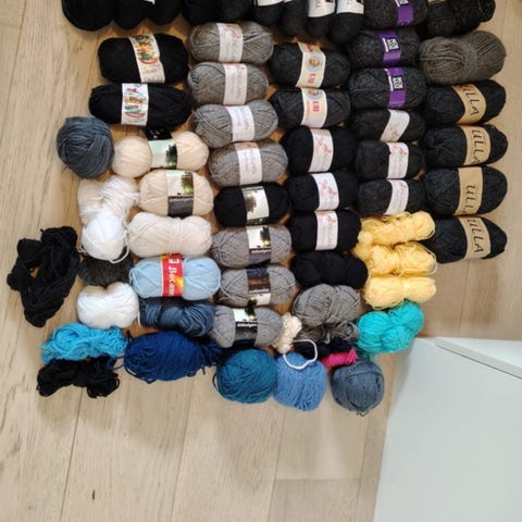 Selger 4 nøster, 2 og 2 farger i samme parti.