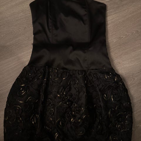 Veldig flott paljettkjole fra ZARA i str. XS. Lapper er klippet av, men jeg endte opp med å aldri bruke kjolen. Glidelås i ryggen. «Tung» og solid kvalitet på kjolen, og paljettene drysser ikke.