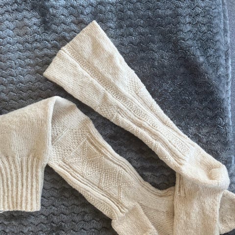 Disse er solgt, men jeg kan flette et nytt par på 2-3 dager. Håndlaget i 100% norsk ull fra Rauma. 3-tråds strikkegarn. Ca 115-120 cm lange pluss dusker, ca. 3 cm i bredde. Disse her er flammet med 32 tråd, men kan flamme en annen type hosebånd etter ønske (med mer tråd, lengre, med forskjellige dusker osv.). Kan sendes.