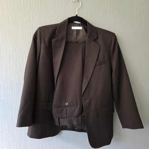 Meget pent brukt gråmelert dress med vest.