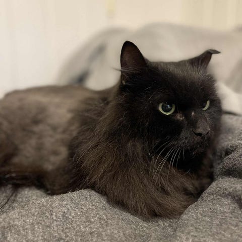 Hils på tøffe herlige fluffy TAMARA 🖤 Hun er en spennende frøken med en brokete fortid som søker et trygt og godt foralltid hjem hos rause snille folk. Tamara har gjort enorme framskritt siden hun kom inn til oss våren 2024, hun kom til oss fra Tjelta kun 1 år gammel og høygravid og fødte 4 små i fosterhjem hos oss. Hun er nå blitt en rolig og kjærlig sofapus. Hun liker også å leke med motoriserte leker🦋 og hun liker godt å bli lest bok for, ligge i sofaen, få selskap og elsker våtfor og snacks. Trives med andre rolige katter. Men hun er fortsatt sensitiv for brå bevegelser og mye uro. Hun ønsker seg derfor et rolig hjem med større/rolige barn erl uten barn. Hun vil trenge et hjem som vil gi henne tid og space til å bli husvarm, når hun er trygg er hun en kosefrøken. Ta kontakt for å møte denne fluffy frøkna 🙌🏻