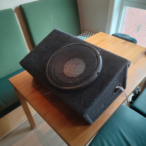 Meget bra 12" Focal passiv subwoofer med tilpasset kasse til Hiace vegg. Selges kr 800,- Foretrekker henting på 6430 Bud. Om den må sendes så kommer frakt i tillegg.