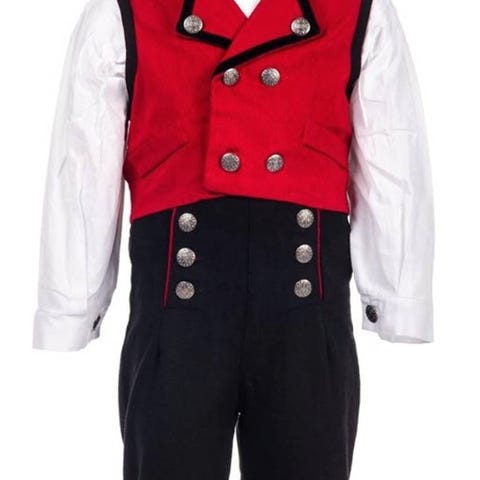 Maxemilla Ivar Festdrakt i str. 86. Har blitt brukt av vår sønn når han var 1,2 og 3 år. Siste bilde er fra han var ett år. Det er en flekk på ermet som jeg ikke får bort, men godt mulig noen andre kan få den bort. Jeg har festet alle knappene på nytt, da de var noe løse etter en 17.mai.