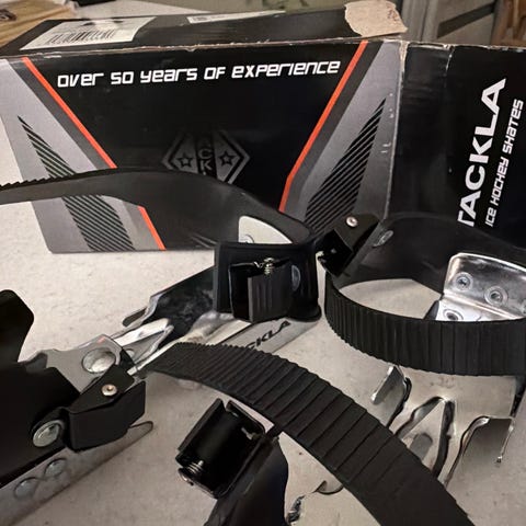 Skinnene hører til FR Neo rulleskøyter, veldig lav skinner (frames). Brukt noen ganger, ikke masse, men det er noen merker på dem.