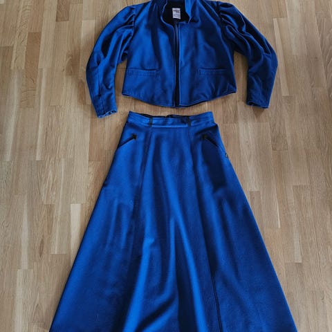 Kort overdel og skjørt som kan brukes med eller uten belte. Bomull 100%, luftig og nydelig lilla farge. Ble kjøpt i Paris og brukt 1 gang.