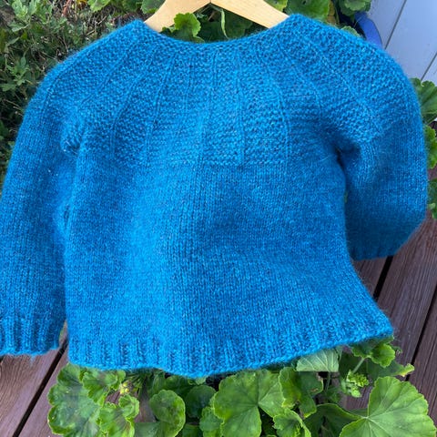 Nydelig genser med fletter strikket i mohair garn. Er ikke brukt da ungen syntes at den klør. Ca str 7 år