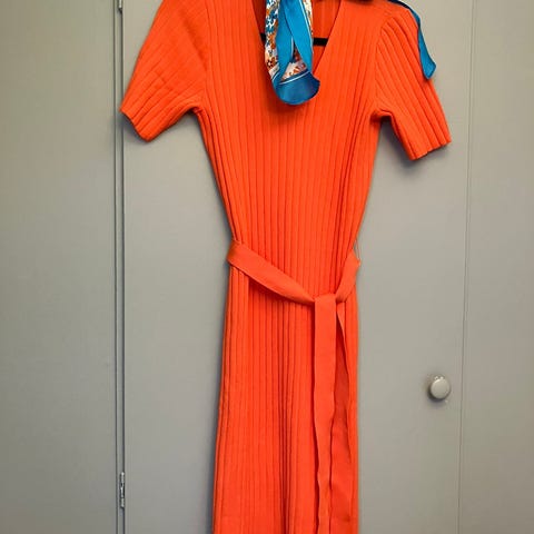 Ganske kort kjole, med diagonale striper og foret i hele lengden. Se også mine andre annonser.