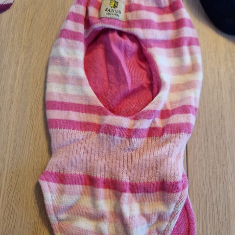 To stk balaklava i ull str 51/53, vindtett, i god stand. Selges for 100 kr stk enten samlet eller hver for seg.
