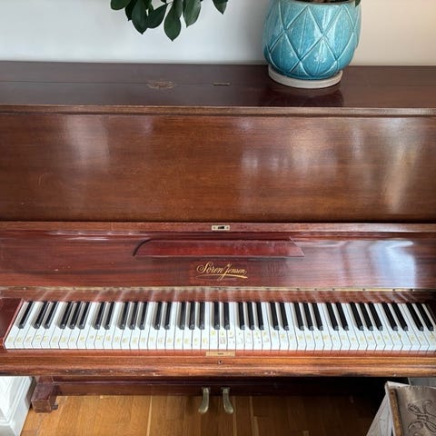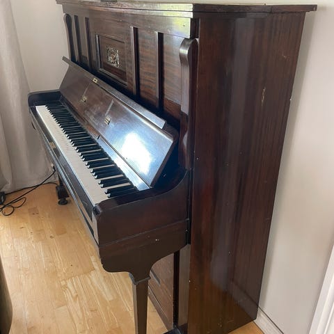 Dette var et rep. prosjekt som ikke ble påbegynt. Pianoet er spillbart, stemt opp en hel tone og har slitent treverk, men dette er et nydelig piano med flott klang og sterk historie- egner seg evt som klassisk møbel.