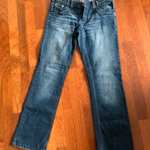 Jeg hadde på meg et par skikkelig kule mørkeblå jeans et par ganger. Jeg selger fordi jeg gikk ned i vekt og de ble store