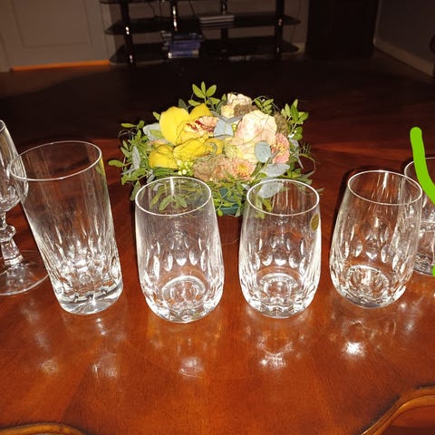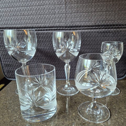 1 stettglass vann/vin, 3 vannglass selges. 200,- for stettglasset, 100,- pr vannglass eller 250,- for alle 3. Kan hentes/bringes om det passer. Ellers porto i tillegg. Betaling nettbank.