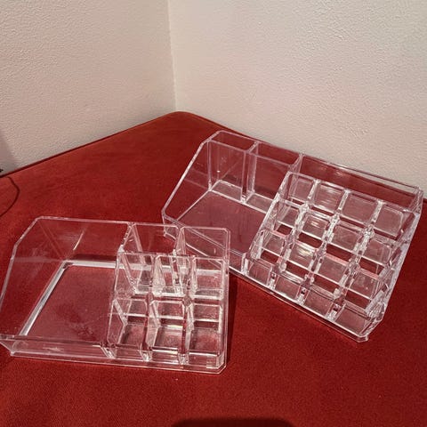2 stk oppbevaringsbokser med rom og lokk i klare plast