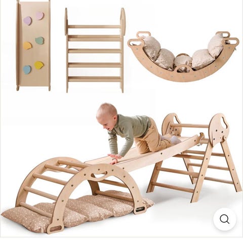 Klatretriangelet er en unik tigerlekeplass for barn. Selv babyer bruker trestengene til klatretrekanten til å trekke seg opp og reise seg. Klatretrekanten tilbyr uendelige lærings- og morsomme muligheter.