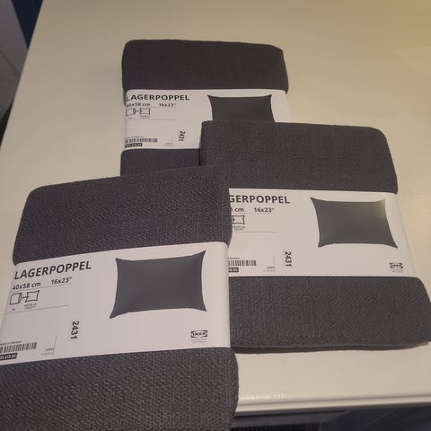 2 stk. putetrekk i linstoff selges. Fargen er grå. Kjøpt på IKEA. Måler 50 cm x 50 cm.
