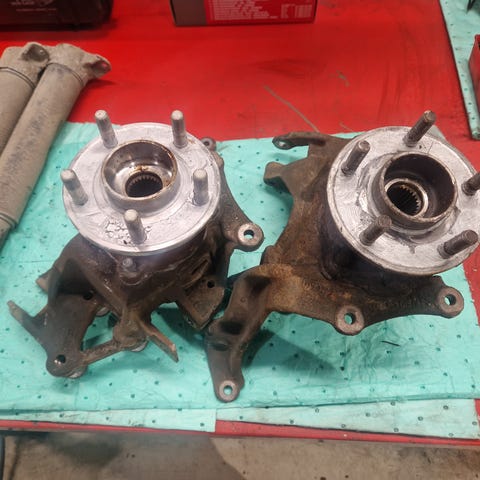 2 stk spindel er til Volvo v70 første generasjon stått på 98 mod med mange nesten ny deler. Lenkearmer i god stand og en styre kule hjullager bremse skjold og bremse skiver som det er blitt litt rust på som greit kan slipes bort. Her er det mange gode deler. Tlf 90051449