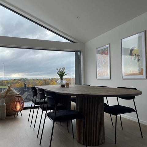 Selger mitt nydelige hvitpimenterte eikebord med sorte bein fra Skeidar. Laget på bestilling og mottatt 29/4/22 fra Hammel Design. Ø135 cm. Om ønskelig fås det også kjøpt innleggsplater ved behov.