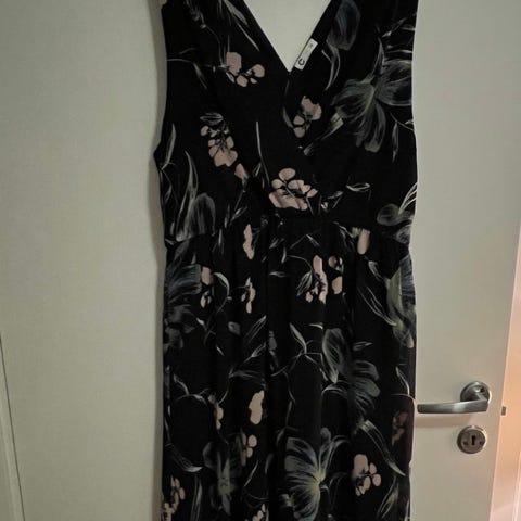 Den har et lett stoff, har et flatterende snitt og er veldig behagelig på. Har også lommer. Størrelse 34.