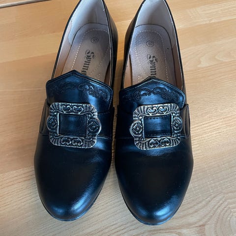 Ekte bunadssko fra svunnen tid i str 6 * 40) i skinn .mangler lisser men det ses ikke. Ønsker 990 kroner/ bud ! Antageligvis produsert på 1950/60 tallet da norrøna produserte slike varer .dette er en del av historien og et sjeldent funn .