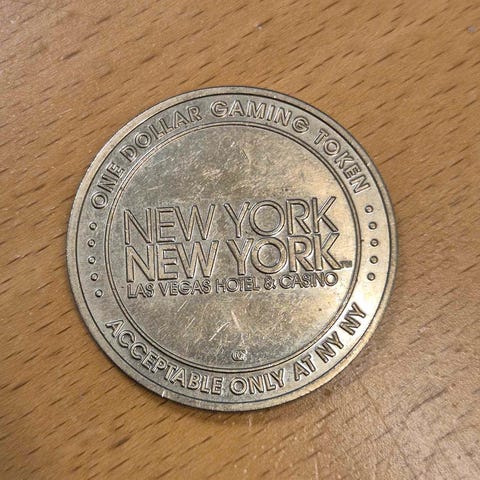 Velholdt 1$ Dealer Button, 50 mm. Kobber-sink