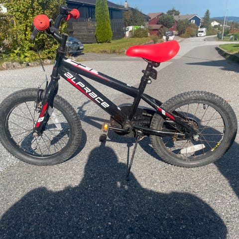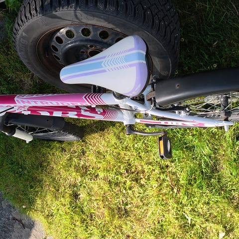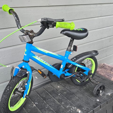 Barnesykkel fra Diamant.Brukt mellom støttehjulssykkel og frem til 7 år.Oppebevart inne hver vinter.Trøerne er gått av noe på,men ikke noe som går ut over bruken.Se bilde.Må hentes.