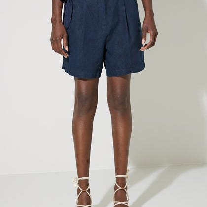 Fin Jean Paul lin shorts i blå farge. Den er pent brukt. Den er lang litt under kneet. Har glidelås på siden at den er lett å ha på. Den har både knapp og bånd til å knyte rundt livet.
