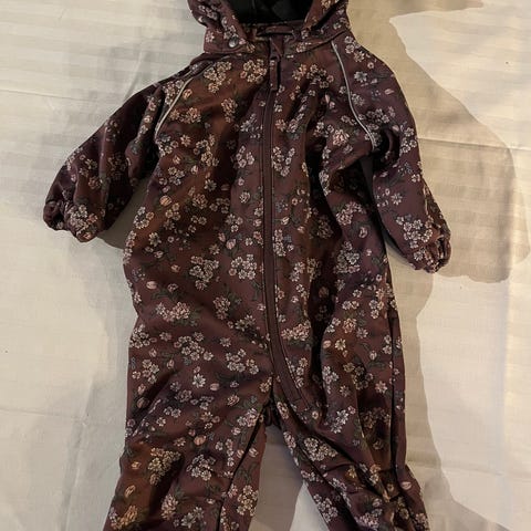 Må fikses litt på, men mye bruk igjen. Lite hull ved zipper ved skrittet, to av knappene til båndene til å ha under sko er borte, også remmene. Noen små nesten ikke synlige flekker på bryst, se bilder.