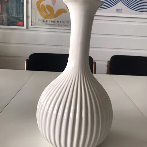 Flott og høy vase i hvit 'swirl'. Ligner Murano, men kjøpt på bruktmarked uten info.