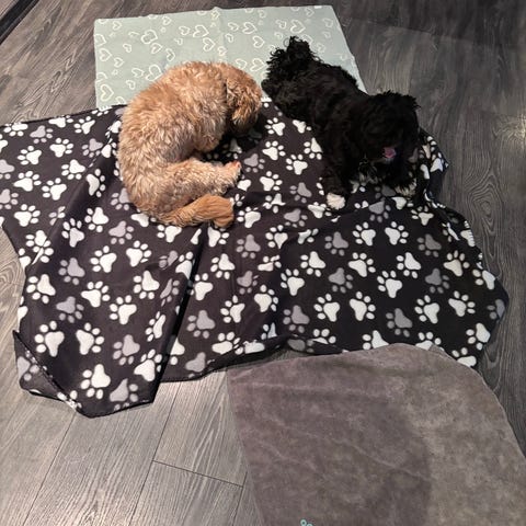 Skal suge til seg skitt og nøkk, så kan det ristes bort. Må sikkert vaskes igjen, men er vasket, men ligget i boks med hundeting. Ingen skader eller ødeleggelser.