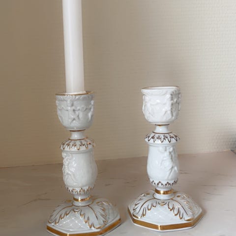 Ubeskrivelig vakkre vintage lysestaker i porselen