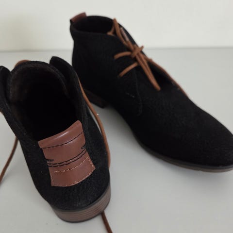 Selger et par stilrene Marc O’Polo ørkenboots i semsket skinn. Klassisk design med beige snøring, solide sømmer og komfortabel såle – perfekt til både hverdag og jobb. Skoene er pent brukt og i god stand, klare for en ny garderobe.