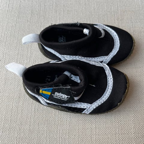 Badeskoene er laget av et hurtigtørkende materiale og tilbyr nær 100 prosent UV-beskyttelse.