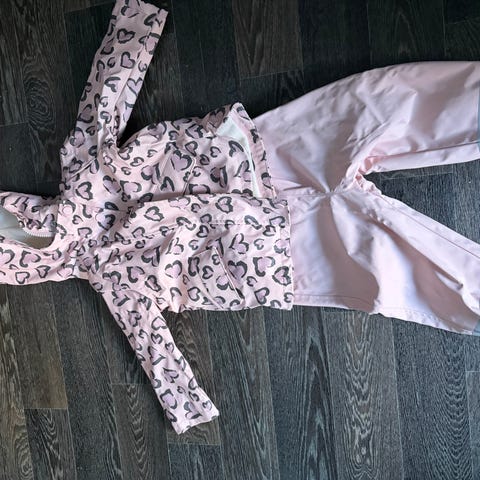 Svært pent brukt regntøy str. 92-98. Har satt på helt nye strikker under beina.