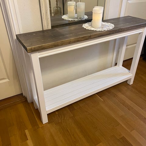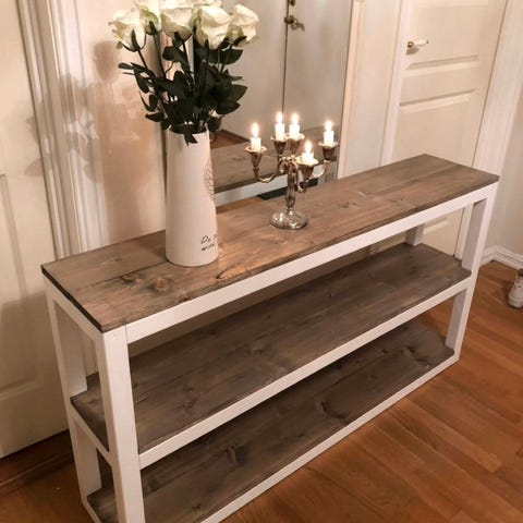 Hyllene er beiset i fargen drivved og lakkert med matt lakk