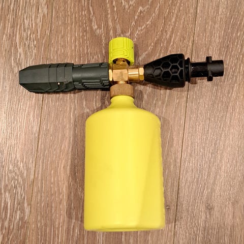 Pakke med injektor, skumlanse og tilførselsslange for kjemi.