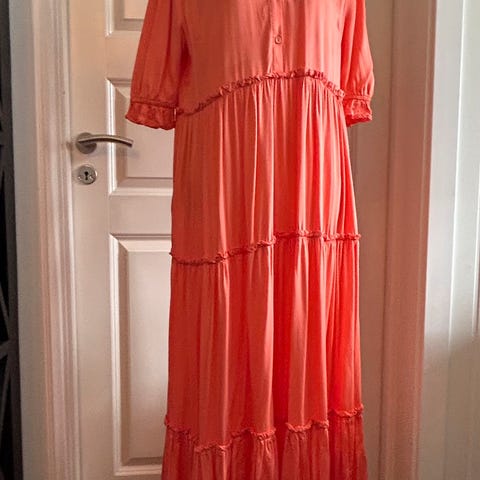 Helt utrolig lekker kjole med de aller fineste detaljene. Lange ermer og lukking i ryggen. Underkjole dekker skjørtet.