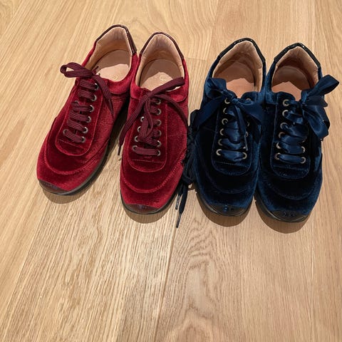 100% skinn. Mykt hvitt skinn m/ gullfargede detaljer, platformhøyde 4cm, hælhøyde 5,2 cm. Brukt 1 gang