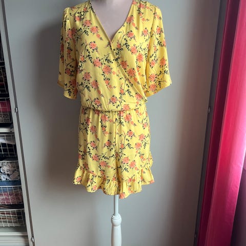 Jumpsuit i str L fra Cubus med blonde detaljer i bryst og skuldre.