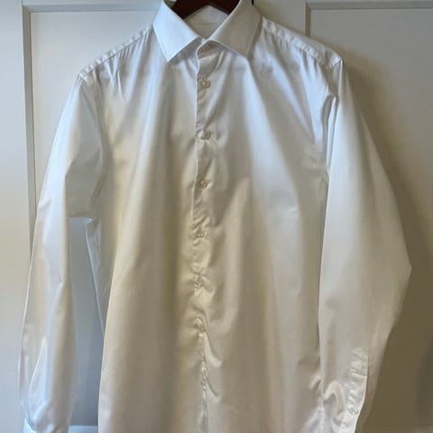 Hvit pen herreskjorte str L fra Dressmann. Selges kr 150