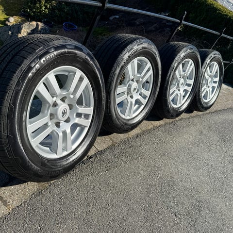 Kyowa 20-tommers felger med nesten nye Landsail dekk 265/50R20. Det er ca. 3000 km på dekkene, så minimalt med slitasje. Selges eller helst byttes i 17-toms originale Land Cruiser-felger med greie dekk (eller andre 17"). Det er ikke min greie med 20-tommere bare.